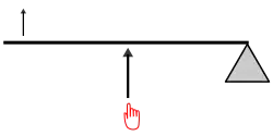 Levier de troisième classe. Sur ce schéma, le levier fonctionne correctement si le point d'appui est attaché à la barre.