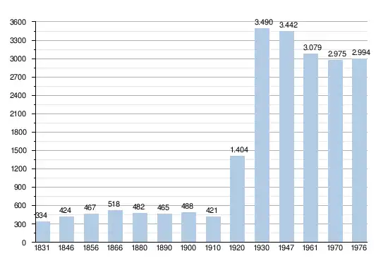 - Sources : INS, Rem. : 1831 jusqu'en 1970 = recensements, 1976 = nombre d'habitants au 31 décembre.