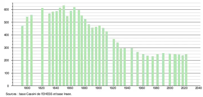 - ↑ Fiches Insee - Populations de référence de la commune pour les années 2006, 2007, 2008, 2009, 2010, 2011, 2012, 2013, 2014, 2015, 2016, 2017, 2018, 2019, 2020, 2021 et 2022.