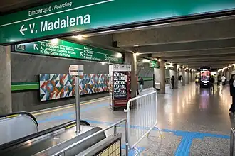 et Desaceleração, de Fernando Lemos, constitué d'un panneau, de 2 m de hauteur sur 20 m de long, constitué de carreaux de céramique peints. Elle est installée face au quai vers Vila Madalena[2].