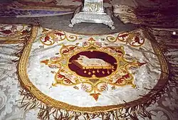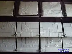 - ↑ D'après les explications du dépliant du musée de la broderie.
