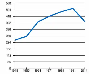 - 1 2 (sq) « Évolution de la population 1948-2011 », sur pop-stat.mashke.org (consulté le ).