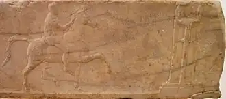Fait rare pour un sculpteur de cette période, on a conservé une de ses œuvres originales, identifiée par sa signature, une base votive trouvée sur l'agora d'Athènes en 1891[4], qui supportait un tripode de bronze, dédiée à l'occasion d'une victoire dans un concours d’anthippasia (voir ci-contre) : il s'agirait d'une œuvre de jeunesse du sculpteur, avant son départ pour l'Asie.