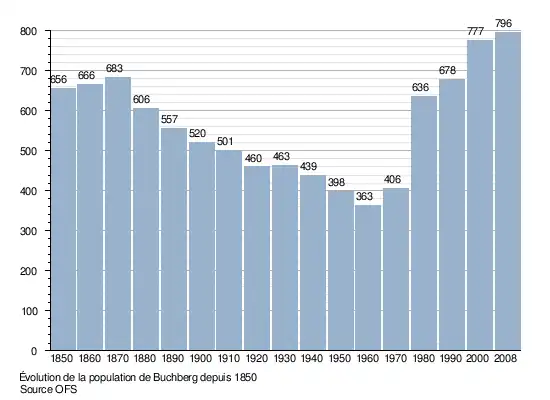 Le graphique suivant résume l'évolution de la population de Buchberg entre 1850 et 2008[4] :