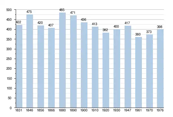 • Sources : INS, Rem. : 1831 jusqu'en 1970 = recensements, 1976 = nombre d'habitants au 31 décembre[2].