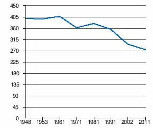 - 1 2 (sr + en) « Livre 20 : Vue d'ensemble comparative de la population en 1948, 1953, 1961, 1971, 1981, 1991, 2002 et 2011, données par localités) » [PDF], pages du recensement de 2011 en Serbie - Institut de statistique de la république de Serbie, (consulté le )