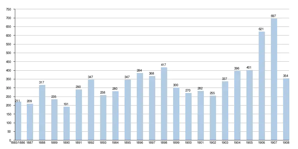 - ↑ Par exemple Bulletin officiel de l'État indépendant du Congo, février-mars 1902.