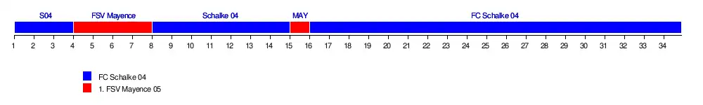 | Schalke | 18 | 18 | 18 | 17 | 17 | 17 | 17 | 18 | 18 | 18 | 18 | 18 | 18 | 18 | 17 | 18 | 18 | 18 | 18 | 18 | 18 | 18 | 18 | 18 | 18 | 18 | 18 | 18 | 18 | 18 | 18 | 18 | 18 | 18 | 34 | ||