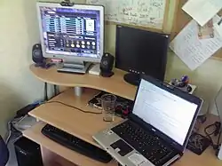 - À partir de 1980, la micro-informatique et l’arrivée de l’ordinateur personnel, la configuration du bureau a évolué vers un espace de travail un peu plus spacieux ou mieux organisé pour permettre l’agencement du matériel. Si l’écran a sa place sur la table du bureau avec le téléphone, le clavier se loge sous celle-ci sur un étroit tiroir amovible, l’unité centrale est logée, sous ou à côté du bureau (en fonction du format du boîtier), dans le caisson sur lequel est également posée l’imprimante.