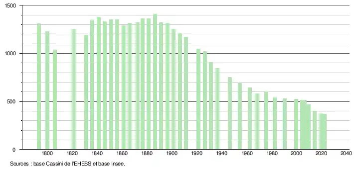 - ↑ Fiches Insee - Populations de référence de la commune pour les années 2006, 2007, 2008, 2009, 2010, 2011, 2012, 2013, 2014, 2015, 2016, 2017, 2018, 2019, 2020, 2021 et 2022.