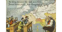 Le but de guerre qu'est la constitution d'une Afrique centrale allemande est ardemment poursuivi. Wilhelm Solf, secrétaire d'État aux colonies, fait en août et septembre 1914 une proposition à ce sujet : la répartition des colonies françaises, belges et portugaises en Afrique que Bethmann Hollweg avait incluses dans le Septemberprogramm[23]. Malgré le flot annexionniste qui connaît son apogée à l'été 1915, les volontés de conquête s'estompent relativement vite dans une grande partie de la population en raison des conséquences de la guerre. À la psychose de guerre de l'été 1914-1915 succède le désenchantement d'une grande partie de la population[24]. La propagande annexionniste est surtout efficace dans les milieux industriels et intellectuels (alors qu'elle touchera la majeure partie de la population lors de la Seconde Guerre mondiale). Dans la deuxième moitié de la guerre, l'expression socialiste « paix sans annexions[25] » est très populaire. La morosité, principalement chez les soldats, se dirige contre la Ligue pangermaniste et ses membres bellicistes.