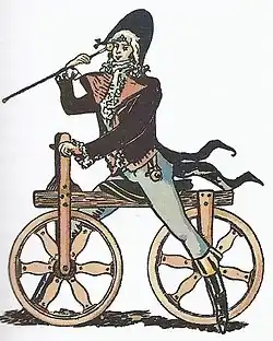 En 1817, le jeune baron allemand Karl Drais[1] fait déposer en France un brevet d'importation pour un engin dénommé « vélocipède »[2], appelé dans le langage courant draisienne.