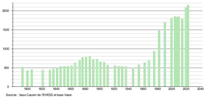 En 2022, la commune comptait 2 151 habitants[Note 4], en évolution de +18,19 % par rapport à 2016 (Gironde : +6,91 %, France hors Mayotte : +2,11 %).