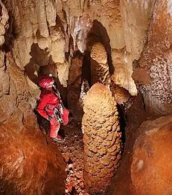Un cône est un spéléothème qui se forme dans des gours ou bassins d'eau très minéralisée.