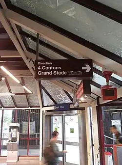 - 2e niveau : les deux quais d'embarquement (vers CHU - Eurasanté et Quatre Cantons - Stade Pierre-Mauroy) autour de la voie centrale.