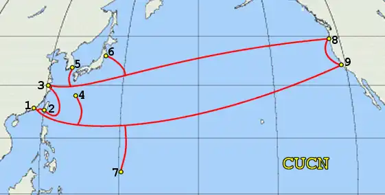 Il relie notamment la Chine populaire aux États-Unis, mais aussi la Chine populaire à Taïwan.