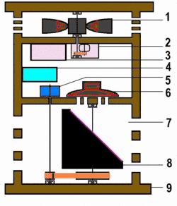Les modèles les plus courants sont constitués d'une amplification à lampes de 40 W et de deux haut-parleurs. Le son est filtré de façon à envoyer les graves dans le haut-parleur des basses et les aigus dans le haut-parleur des aigus. Le haut-parleur des basses (6) est dirigé vers le bas à travers un tambour rotatif (7-8) et le haut-parleur d'aigus est dirigé vers le haut de la cabine à travers une double trompette rotative (1). (Voir le schéma de fonctionnement)