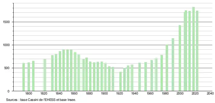 De 1962 à 1999 : population sans doubles comptes ; pour les dates suivantes : population municipale.