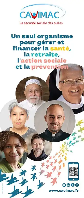 La Caisse d'assurance vieillesse, invalidité et maladie des cultes (Cavimac), fondée en 1978, est un régime spécial de la Sécurité sociale française. Elle assure le recouvrement des cotisations (comme une Urssaf), le versement des prestations d'assurance maladie, maternité et invalidité (comme une Cpam), d'assurance vieillesse (comme une Carsat). C'est un régime de Sécurité sociale obligatoire pour tout ministre du culte ou membre de congrégation ou de collectivité religieuse.