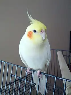 La Calopsitte élégante (Nymphicus hollandicus) ou simplement Calopsitte, aussi appelée cockatiel ( en langue anglaise ) ou encore Perruche nymphique, est une espèce d'oiseaux australienne. C'est la seule espèce du genre Nymphicus. De taille similaire à celle d'un petit pigeon, la calopsitte est souvent associée comme oiseau de compagnie, bien qu'assez bruyant. Parfois dénommée perruche, elle fait partie de la même famille que les Cacathoes, et plus précisément de la sous-famille des Nymphicinés, seule représente de cette sous-famille. Cette petite perruche est réputée être un bon animal de compagnie facile à élever. Elle se nourrit principalement des fruits comme des bananes, des kiwis, pommes.