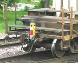 [14]. L'ETD détecte également les mouvements du train au moment du démarrage et transmet cette information par radio aux mécaniciens afin qu'ils sachent que tout le mou est sorti des attelages et qu'une puissance supplémentaire peut être appliquée. Les machines sont également équipées de feux rouges clignotants pour avertir les trains suivants qu'un train les précède. Avec l'introduction de l'ETD, le chef de train est passé à l'avant du train avec le mécanicien.