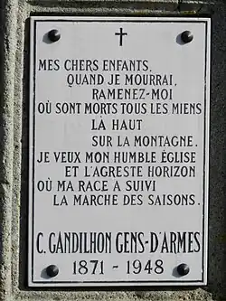 Camille Gandilhon Gens d'Armes (Murat, - Bordeaux, ) était un traducteur, critique littéraire et poète français. Il a laissé des recueils de poèmes (tels que Poèmes Arvernes en 1927) exaltant le patriotisme et l'amour de la terre natale.