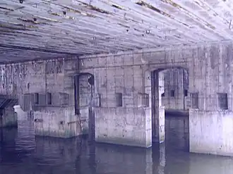 les 1 000 détenus participent à la construction du bunker pour sous-marins « Hornisse », supervisée par la marine de guerre, en étroite collaboration avec Deschimag, le chantier naval de Krupp à Brême.