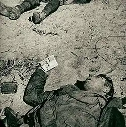 - ↑ Colin F. Baxter. "The War in North Africa, 1940–1943: A Selected Bibliography". 1996. Page 38. 500 000 prisonniers sont répertoriés comme ayant été capturés en Afrique du Nord, en Afrique de l'Est et en Sicile ; étant donné que 150 000 prisonniers de guerre ont été capturés lors de l'invasion alliée de la Sicile et environ 100 000 lors de la Afrique de l'Est, il en resterait environ 250 000 à capturer en Afrique du Nord, 130 000 pendant l'Opération Compass et 120 000 après.