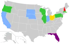 En 1968, Kennedy remporta quatre primaires étatiques (Indiana, Nebraska, Dakota du Sud et Californie) ainsi que celle du district de Columbia, tandis que son rival McCarthy fut déclaré vainqueur dans six (Wisconsin, Pennsylvanie, Massachusetts ― État natal de Kennedy ―, Oregon, New Jersey et Illinois). Des quatre primaires au cours desquelles les deux hommes furent directement opposés l'un à l'autre, Kennedy l'emporta cependant à trois reprises (Indiana, Nebraska et Californie) alors que McCarthy ne fut victorieux qu'une seule fois (Oregon)[25].