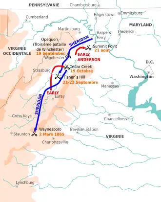 Les campagnes de la vallée de Shenandoah de 1864 sont un ensemble de mouvements de troupes et de batailles qui ont eu lieu dans la vallée de Shenandoah en Virginie, de mai à octobre 1864. De nombreux historiens militaires divisent cette période en trois « campagnes » distinctes.