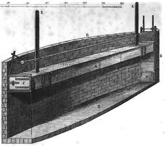 La littérature française de l'époque (notamment Joseph-Michel Dutens) évoque l’ouvrage sous le nom d'"écluse à flotteur".