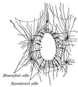 Le canal épendymaire ou canal de l'épendyme est un canal situé au centre de la moelle épinière. Il est entouré d'un revêtement unistratifié cubique ou cylindrique simple, constitué de cellules épendymaires, et de pieds astrocytaires étroitement enchevêtrés les uns avec les autres. Clos en son sommet par l'obex, le canal épendymaire de la moelle épinière contient du LCS (liquide cérébrospinal)[1].