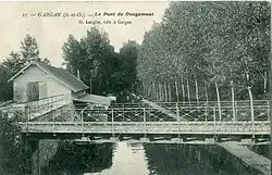 Derrière le pont se trouve un abri à péniche. Le pont était destiné au passage des personnes, des véhicules, mais également de la ligne des Coquetiers.