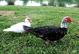 Le canard de Barbarie (Cairina moschata)[1],[2] désigne la race[1] de canards domestiques[2] issue d'une espèce de canard sauvage américain appelé canard musqué[1]. Bien que ce soit un oiseau originaire des régions intertropicales, il s'acclimate aux environnements tempérés et peut supporter des températures allant jusqu'en dessous de −12 °C.