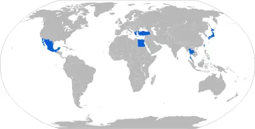 Opérateurs actuels (en bleu) du canon de 127 mm Mark 42.