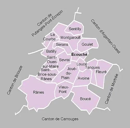 Les anciennes communes suivantes étaient incluses dans le canton d'Écouché[15] :