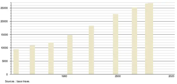 (Sources : Base Insee, population sans doubles comptes à partir de 1962[5] puis population municipale à partir de 2006[6])