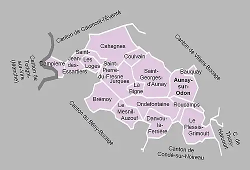 Le canton d'Aunay-sur-Odon regroupait dix-sept communes.