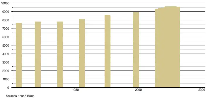 - ↑ Population selon le sexe et l'âge quinquennal de 1968 à 2013 - Recensements harmonisés - Séries départementales et communales