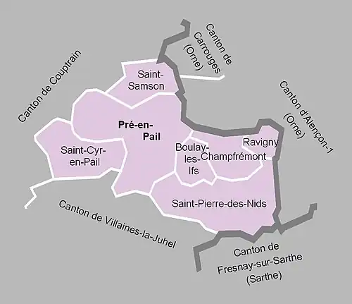 Le canton de Pré-en-Pail est une ancienne division administrative française située dans le département de la Mayenne et la région Pays de la Loire.