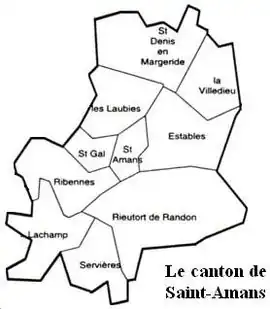 Situation du canton de Saint-Amans dans le département de Lozère. | |