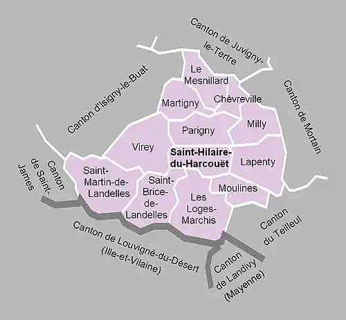 À la suite du redécoupage des cantons pour 2015, toutes les communes sont à nouveau rattachées au canton de Saint-Hilaire-du-Harcouët auquel s'ajoutent les douze communes du canton de Saint-James et trois communes du canton du Teilleul.