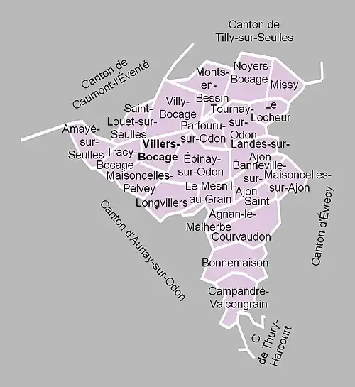 Les anciennes communes suivantes étaient incluses dans le canton de Villers-Bocage[9] :
