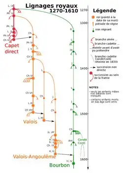 | Branches | Bourgogne, Vermandois, Dreux, Courtenay, Artois, Anjou-Sicile, Bourbon, Valois, Évreux-Navarre |