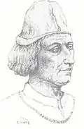 Fils d'Alexandre VI, gonfalonier de l'Église, accusé de l'assassinat de son frère Giovanni[31], directement ou indirectement[32]. Le pape Jules II refusa de le confirmer dans sa charge[33] | |
