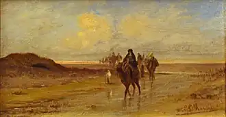 - Paysage égyptien (bords du Nil) ; huile sur carton (14x42cm) (vers 1900);