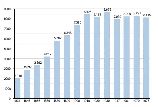 Sources: INS, Rem.: 1831 jusqu'en 1970 = recensements, 1976 = nombre d'habitants au 31 décembre.