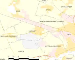 - ↑ « Fiche communale de Carpiquet », sur le système d'information pour la gestion des eaux souterraines dans le bassin Seine-Normandie (consulté le )