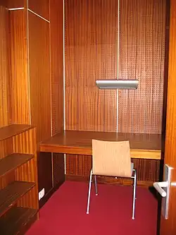Dans les bibliothèques universitaires françaises, on appelle carrel un espace d'étude individuel qui peut être soit cloisonné dans une salle de lecture soit une petite pièce.