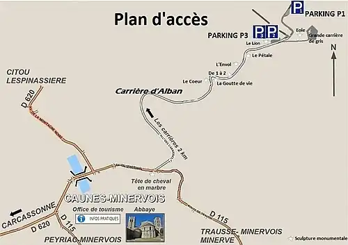 - 1 2 « Trois anciennes carrières de marbre : carrière du Roi, carrière de marbre gris et carrière du roc de Buffens », notice no PA11000036, sur la plateforme ouverte du patrimoine, base Mérimée, ministère français de la Culture